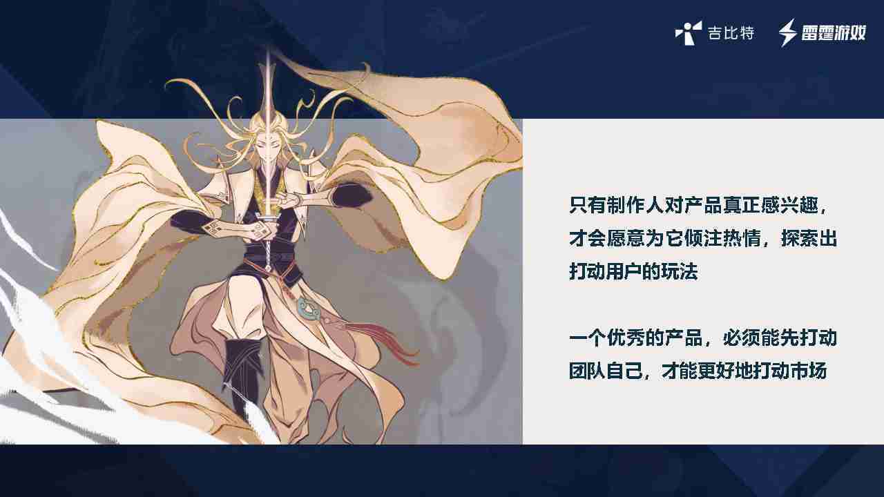 以《一念逍遥》为例,,,2018年公司创始人萌生想做修仙题材的放置游戏的想法,,于是找了两位同事讨论了一下产品的概念,,,这两位现在是项目的制作人,,,花了三周的时间把原型做出来,,,,并且确定最初的战斗原型,,,,以及整个养成的节奏。。。通过几次版本迭代验证后,,,也确定后面的内容应该怎么拓展,,,最终在一年左右时间这个项目上线了。。。。当时我们内部有同事看到《⼀念逍遥》上线,,,,认为品质还不够完美,,但是整体营收还不错。。。就在想那是不是以后我们都做这样的产品????但实际这是错误的认知,,,,我们内部不是这么看的。。游戏在那个时间点上市,,,因为有些市场的考量和营销点的考虑,,,并不是希望所有项目都是这样。。。如果它有更好的契机,,希望它可以做得更大、、、更好,,希望在内核玩法确定之后,,,外围投入可以越大越好,,,,所以后面的几个项目是往这个思路上做。。。。