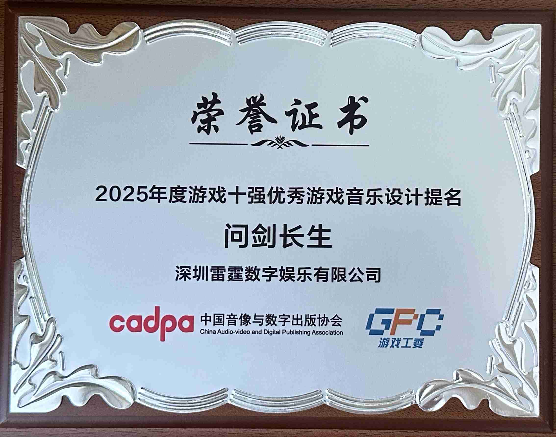 公司坚持走精品化道路,,,,打造与时代精神相契合、、、与海内外大众诉求相契合、、与创作实践相契合的游戏产品,,,倡导构建具有中华文化特色、、、弘扬中华美学精神的产品理念,,切实提升游戏文化内涵的传播力影响力。。。如此次荣获“2025游戏十强年度优秀游戏音乐设计”提名奖的公司自研产品《问剑长生》以音筑境,,以乐传情,,其音乐融合东方传统韵味与现代审美,,构建独特听觉世界,,,运用古筝、、笛子、、、、箜篌等传统乐器与现代管弦乐,,塑造灵动古风仙侠氛围。。。