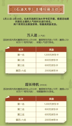 除了“油王”争霸赛,,,精英主播招募活动亦同步开启!!!!赛事分时长奖和人气奖,,奖励同样丰厚!!