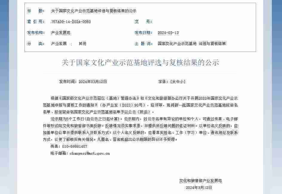 公司新闻 新一批国家文化产业示范基地公示,,,,JIUYOU.COM成功入围