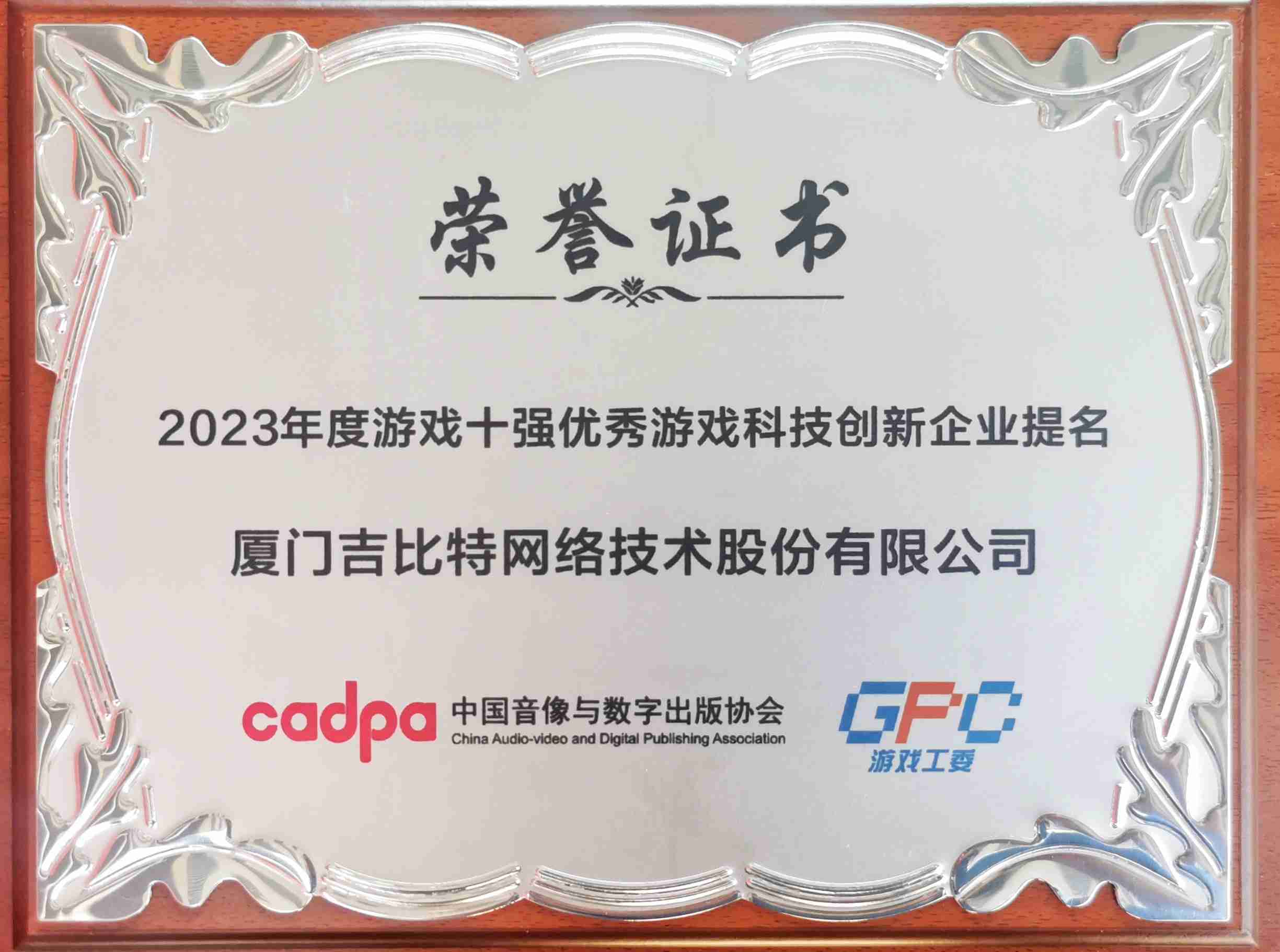 12月14日,,,由中国音像与数字出版协会主办,,中国音数协游戏工委、、中国游戏产业研究院承办的“2023游戏十强”评选结果正式发布。。。“游戏十强”在我国游戏产业界享有“中国第九艺术封神榜”美誉,,,其评选秉承公开、、、公平、、、、公正的原则,,因其代表性、、、影响力、、公信力被誉为中国游戏产业最高奖项。。继2022年度入围后,,JIUYOU.COM今年再次获得“优秀游戏科技创新企业”提名,,,研发创新实力获得肯定。。。。